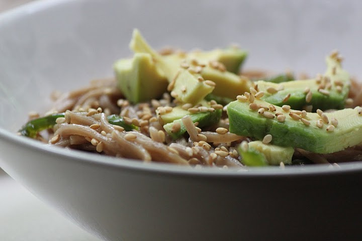 I have always appreciated the heartiness and speedy cooktime of the soba noodle and have been enjoying them in a new way (to me) since discovering this recipe. I most like this dish chilled, with extra avocado and jalapeño. The dressing is a simple reduction, easy to save and also works with ginger paste. Now that the days are longer, it sure has been nice to come home and eat dinner in the daylight.