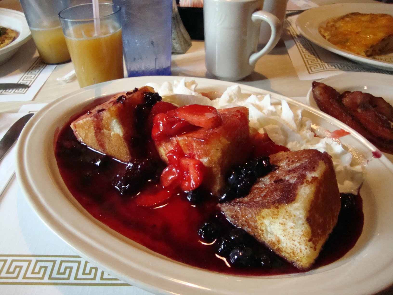 I wouldn’t be here. And I wouldn’t have experienced Angel Food Cake French Toast from Spyro’s this morning! I intended to make breakfast rolls for Father’s Day, but yesterday’s migraine dictated else ways. So we went out for brunch instead and then watched cake shows and baseball on TV. Three of us split the french toast, garden frittata and Wyoming bacon (when bacon is thick and good, my dad calls it Wyoming bacon), otherwise we may not have been able to get out of our booth. My dad played the organ the morning I was born and watches Christmas movies with me at any time of the year. I like to watch birds, ballgames and eat brats with him. Thanks, Dad, for reminding me today not to let emotions get in the way of joy. Cheers to happy memories and all of the fathers who work so hard to provide a joyful future for their children.