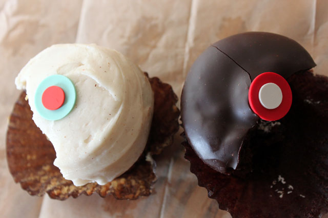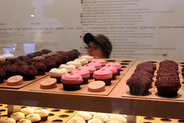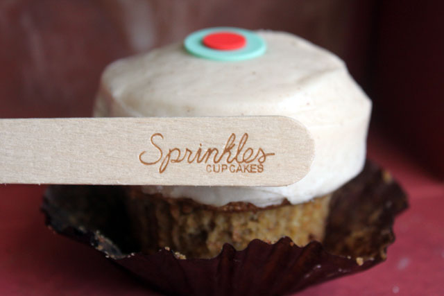 Sprinkles in Chicago this weekend: both the kind that come from the sky and the kind that come from the cupcake gods! When I realized that we were going to stay two blocks from the latest Sprinkles location, I flipped out. I have been following Candace Nelson since she first appeared on TV six years ago, and now her original gourmet cupcakes are baked fresh in the Midwest. So before we left I requested to make a cupcake stop during one of our days in the city, and my brother-in-law said, “why not both days!” And even though there was rain, we totally did stop both days (yes, one of the million examples of why I have the best bro-in-law ever). Of course I like the looks of the colored flavor-indicating sugar dots, but these cupcakes are about the ingredients. They are not too fussy and have proven to be a trendy classic. My top two were the carrot and the chocolate marshmallow. The ganache covering that cupcake will be on my mind for quite some time. I love the rain and fresh chocolate marshmallow cake.