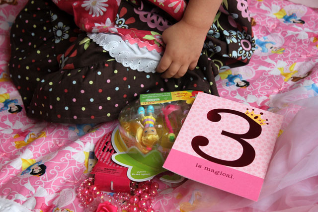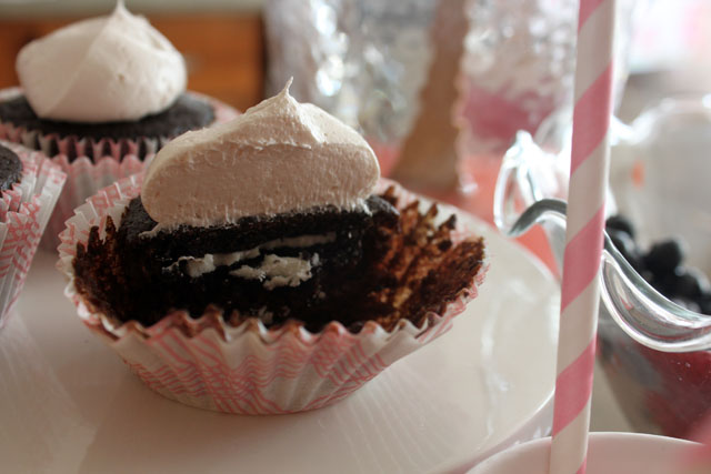 My sister does such a good job at making occasions magical and so do her relatives. She sewed my niece a new dress, Great Grandma made a special princess blanket and “Aunt Bef” sent her the sweetest fairy outfit that she had to change into right away. Also ethereal was the surprise Oreo in the middle of that chocolate cupcake topped with raspberry marshmallow fluff buttercream frosting (another genius recipe from Everyday Food that was well executed). What’s all the fuss? This little girl inspires us all with her giant heart and zest for life. She makes our lives magical by just being her.