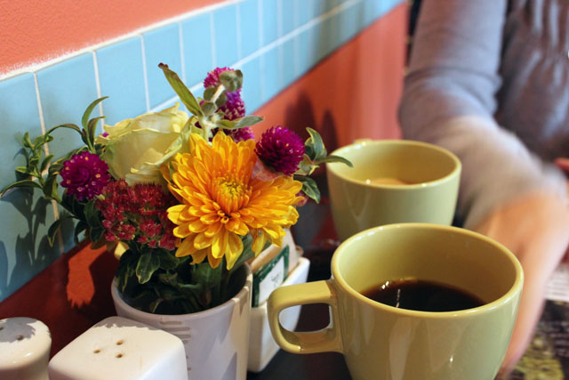 I always say that my first college roommate was a saint, and she still is. When I visited her last week, she treated me to a super brunch in Grand Rapids at Marie Catrib’s. I loved everything about this place from the people to the flowers to the font all over the restaurant. Not to mention the food! We split two dishes: Marie’s own gluten-free pancakes made with sweet potato and cranberries, served with real maple syrup and honey butter & Esperanza’s Omelette with Marie’s seasoned potatoes. I was having such a good time I had to cut myself off from my fourth coffee refill. Sharing joys and sorrows of the past year goes best with brunch.
