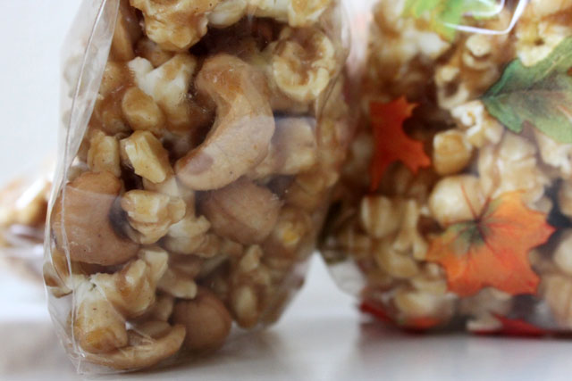 My sister had a Pampered Chef Bridal Shower about 12 years ago, and one of the activities was writing kitchen advice on an apron with a Sharpie. I have no idea what I wrote back then, but I will always remember my mom’s advice: “Never run out of brown sugar.” My mom is smart. This time of year I cannot get enough of it for sprinkling on Cream of Rice or making caramel corn. I think Molasses is one of my hidden weaknesses. Anyhow, I made caramel corn for thank-you gifts this weekend and added some cinnamon and cashews to make it special.
