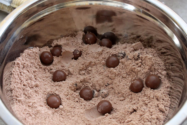 Maltesers (or Whoppers) in the batter not necessary… they get chewy during baking. Stick with mixing in extra malt powder and munch the balls on the side!