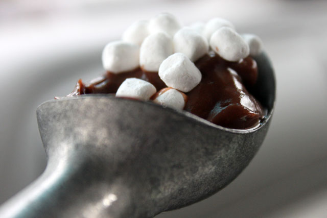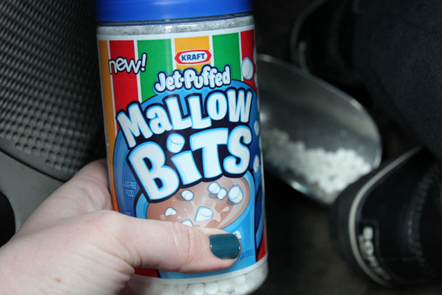 One of my instant hot cocoa dreams has come true! Jet Puffed now sells those little crunchy marshmallows (that there are never enough of) inside cocoa packets. They come in a container that looks something like coffee creamer packaging, and so far I have seen them in vanilla, chocolate, and peppermint varieties. The mallows aren’t puffy at all and seem more like space food to me. They were super in my mug of chocolate pudding. If you also prefer crunchiness to squeakiness in your Rocky Road, wait to add the mallow bits until just before consuming. Otherwise, they rehydrate in the pudding.