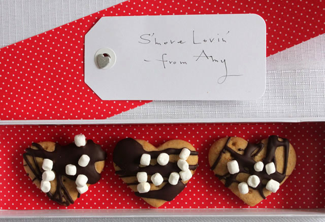 The honey graham dough I made over the weekend was a sort of “healthier” version of shortbread. I added fresh ginger to the recipe and sprinkled demerara sugar over the tops before baking them off. Honestly, I would have been happy stopping there, but remember the mallow bits? I melted some chocolate over the stove in my homemade double-broiler, drizzled it over the grahams, and stuck the mallow bits on top. They turned out to be easy-to-package, simple self-contained s’mores.