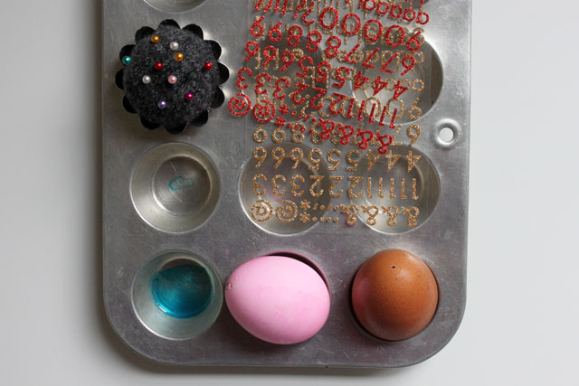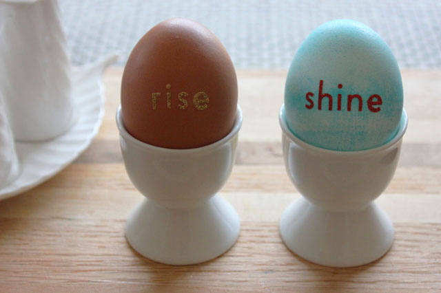 I made some simple Easter eggs this year with pigment and glitter letter stickers. Growing up, we always “blew out” the contents of the eggs (so we could make egg sandwiches) before dyeing them. It was only a few years ago that I had even heard of people hard boiling their Easter eggs (is that what you do?). I do enjoy a good pickled egg. Anyhow, I like how delicate and weightless the egg shell is once it has been emptied. This year I made french toast with the empties!