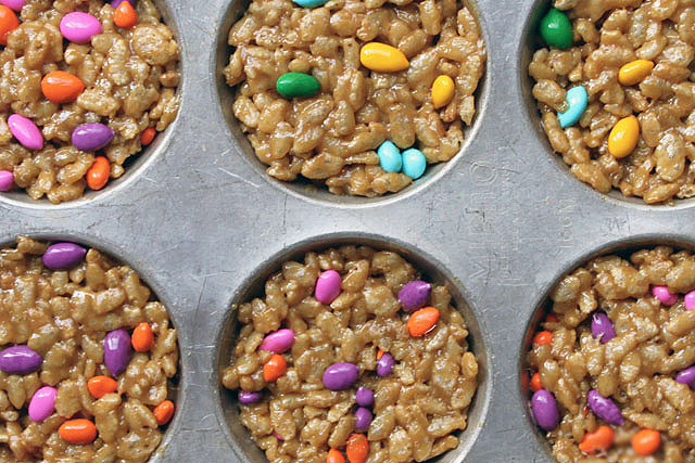 Mix in the remaining ingredients and stir until well combined. Press firmly into your pan or muffin cups with a spatula, icy fingers, or greasy spoon.
