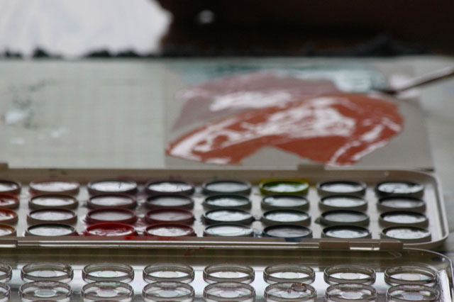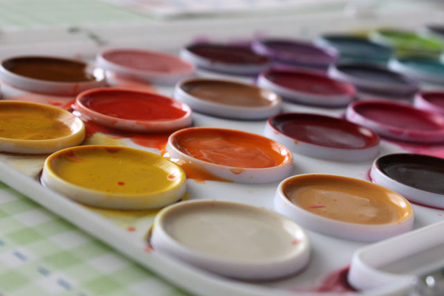 “More water makes more color,” I said to my niece as we sat inside at the kitchen table, loosening up the dry paint palette with our wet brushes as the spring rain fell outside.