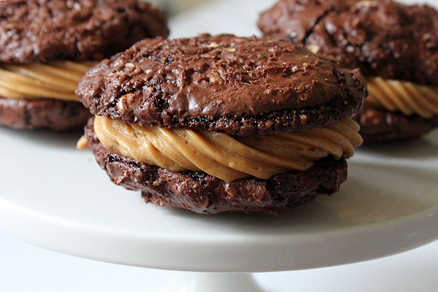 Chocolate & peanut butter: one of the great &s of all time. Earlier this week I whipped up a variation on two decadent (gluten free) dessert recipes. These recipes are suspicious alone but wonderfully dangerous when combined. I took a couple of the dense treats over to a neighbor who shares my affinity for peanut butter. He later told me, judging by the weight of the 2 “cookies” I knew it was serious business! So there you have it, this recipe mash-up is not for the faint of heart. Can you handle it?