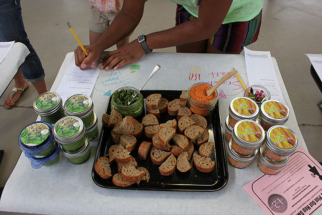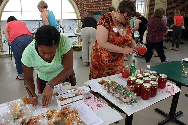 Last month I participated in a community food swap for the first time! Mary has been diligently working to connect our region with the Food Swap Network (read all about it on their site). These photos were taken when I joined her at City Market for the Indianapolis Food Swap. My swap items were riffs on previous recipes made and documented on this blog: Honeycomb Brittle and Porter Candy Apples. I made three types of honeycomb brittle (lavender, toasted almond, black raspberry) and chocolate stout lollipops. At first I was nervous that no one would want to swap for candy, but as you can see I had nothing to worry about. I have been enjoying my swap loot ever since, and now because of Mary’s efforts, Northeast Indiana will host its inaugural swap this weekend. I can’t wait to see what swap-chances await; I hope people will swap for cold-pressed black raspberry shrub drink mixes…
