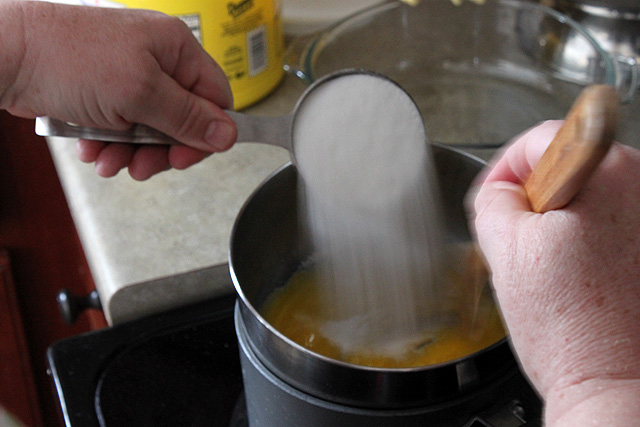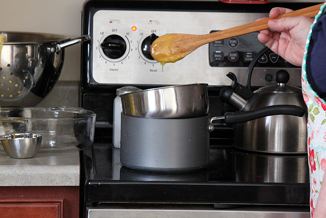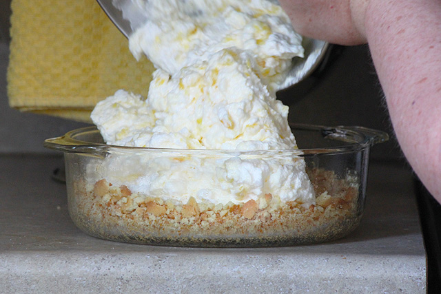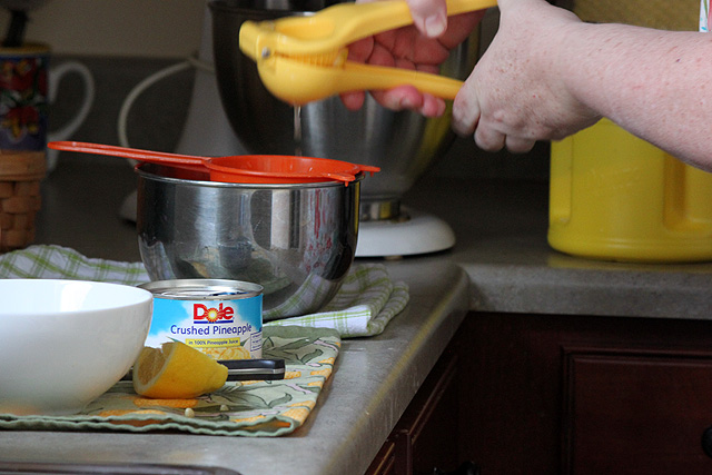 Our latest snowfall totaled around 12 inches, and it left the bare forest branches looking like mixer beaters covered in freshly whipped meringue. The kitchen imitated nature the following day when my mom put together a frozen pineapple torte recipe from days gone by. Even though it is an icebox dessert, there is something sunny and warm about the pineapple torte. Her version reminded me a bit of key lime pie; I suspect because she toned down the sweetness. I first learned of this dessert when she was searching for a recipe similar to what her mom used to make when company would come over for Sunday lunch. She kept calling it an old-fashioned recipe, because it states to cook the custard until it “coats the back of a spoon.” My grandma would plop the fluffy tropical mixture into her metal ice cube trays and put them in the freezer to set up. Refrigerator trays used to have removable dividers with a handle that you pulled up to release the ice. If you took out the dividers, the pineapple mixture went in the bottom part of the tray. You can skip the freezer part if you please; it’s simply fluffy and delicious as is. My mom told me that they normally had frozen pineapple torte in hot weather because it was a lot like ice cream. I found it to be perfectly perky and sunny for a February lunch, and I daresay it would be a pleasant finale to a pork BBQ meal anytime of the year.